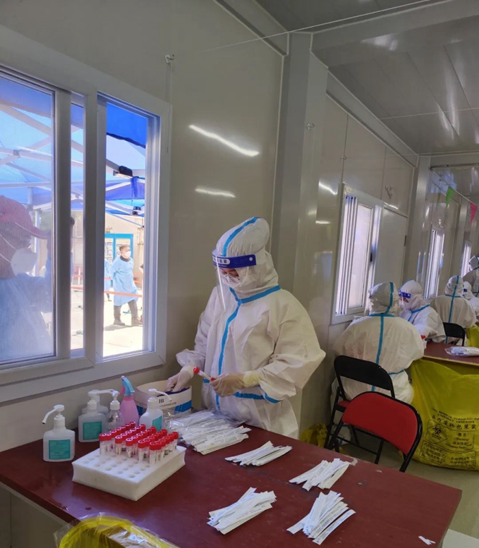 随着天气愈发的燥热,换上大白的必一运动 ,衣服瞬间就已经湿透了,但大家没有一句怨言,继续战斗在检测一线。有的时候做核酸的居民太多,必一运动 的医护人员和志愿者不能按时吃饭,好在小区的群众都很配合,一句句“谢谢,辛苦了”沁入心脾,真的很感动。